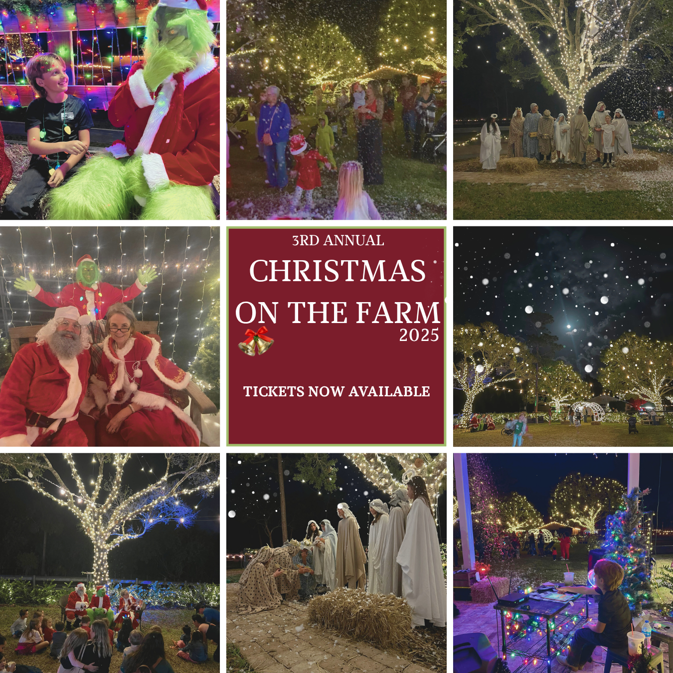 Christmas on the Farm at King’s Stables Farm is a magical, interactive holiday experience for the whole family—featuring Santa, the Grinch, Cindy Lou Who, hayrides, snowfall, lights, games, animals, and more. Make memories, start traditions, and help us save Christmas on the Farm.